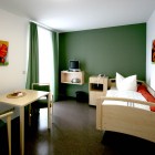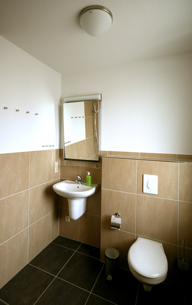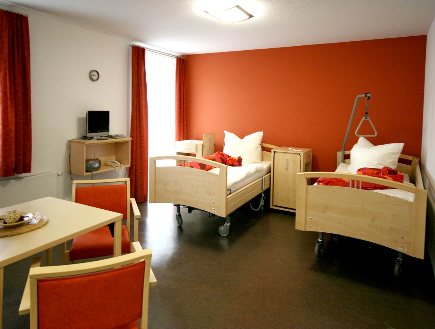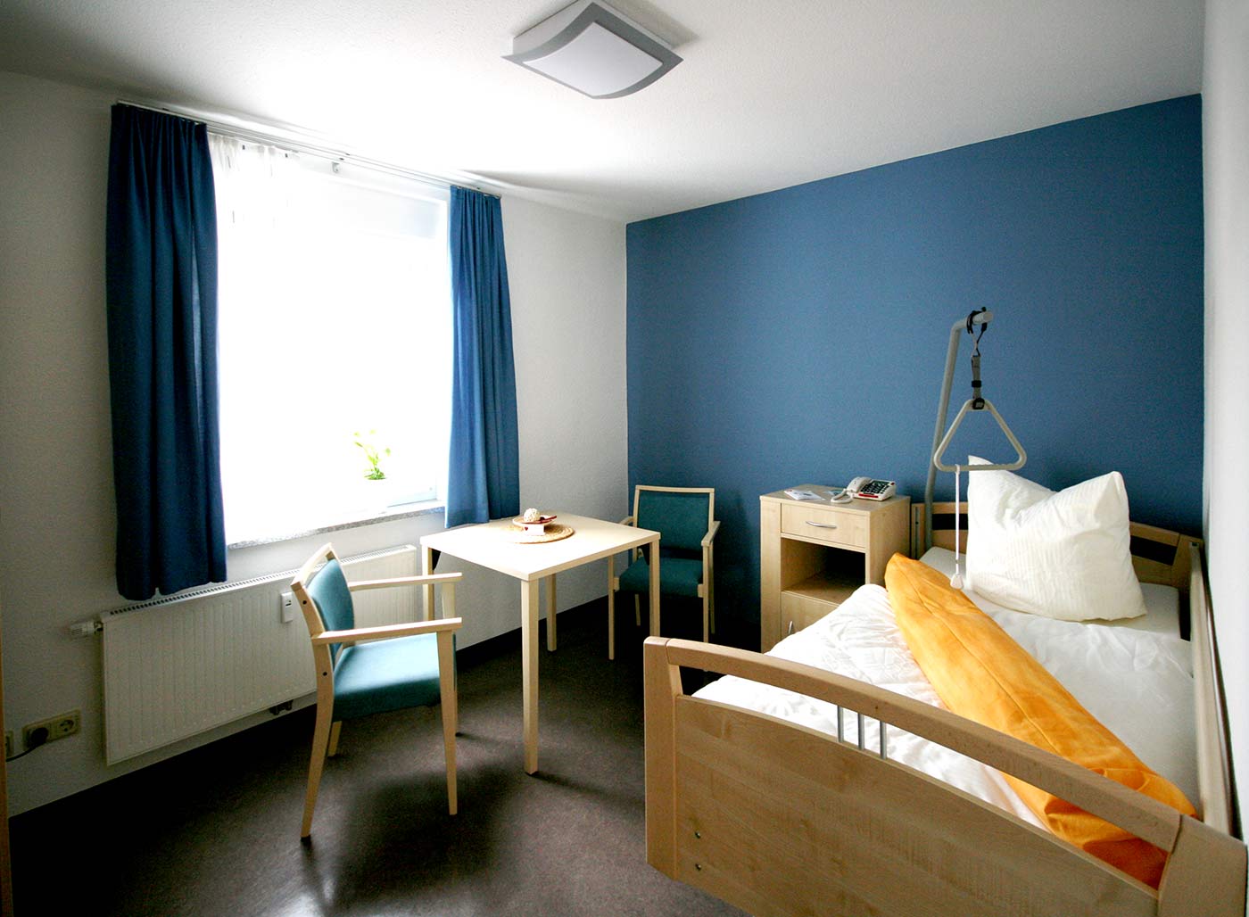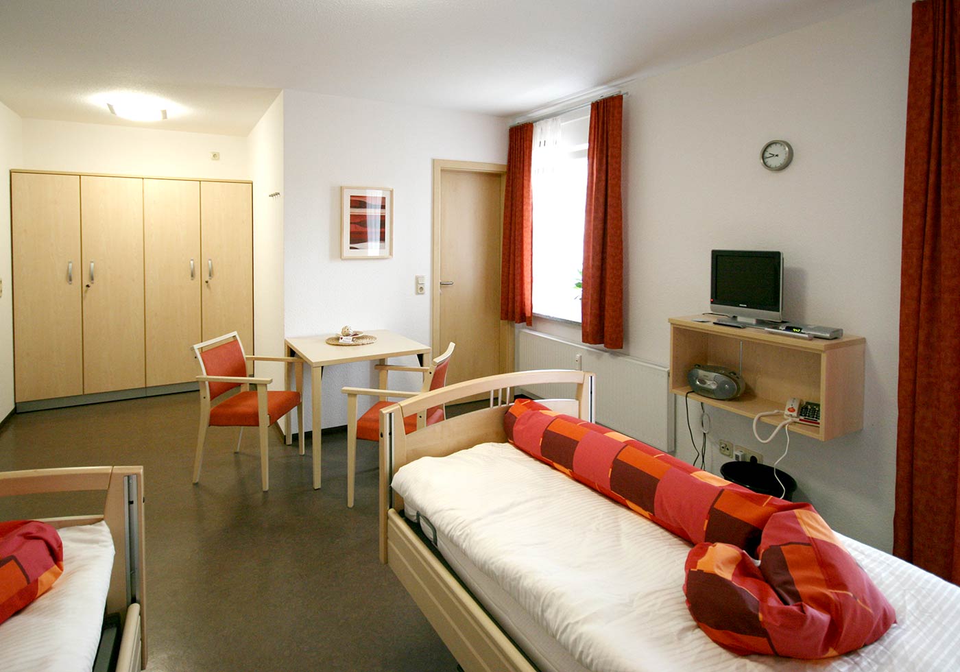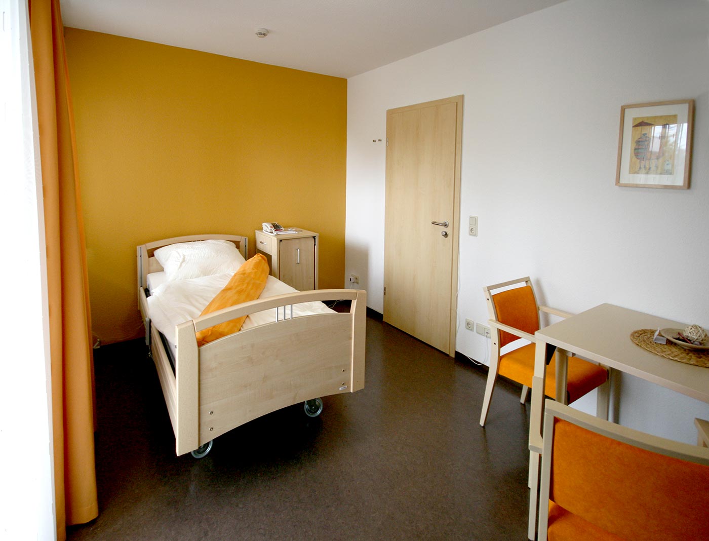 Im Haus sind ein Gemeinschaftsraum, ein Snoezelzimmer, eine behindertengerechte Kueche, Bueros, Sanitärräume und vier Pflegezimmer untergebracht.