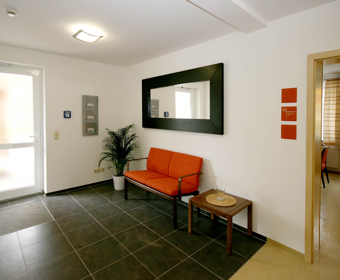 Oberste Priorität des Gestaltungskonzeptes war es, durch den Einsatz von warmen Oberflächen und Farben, eine wohnlich, persönliche Atmosphäre für die Bewohner zu schaffen.
