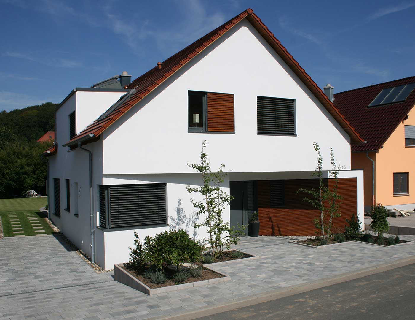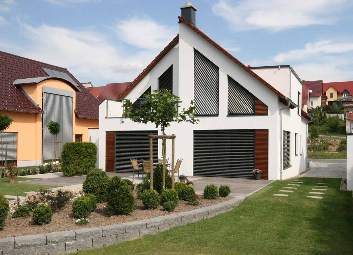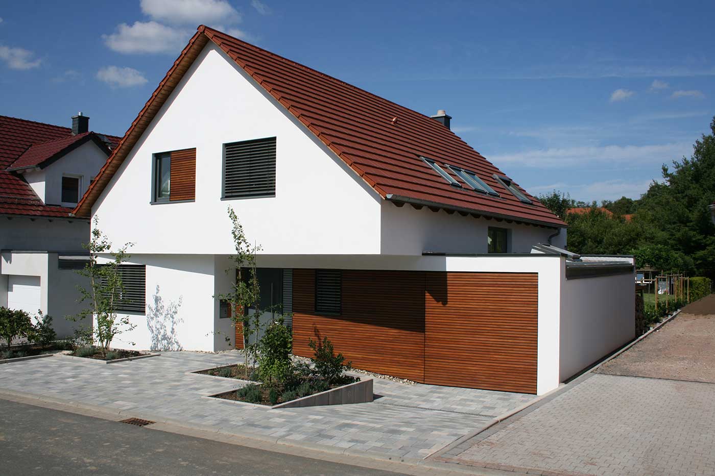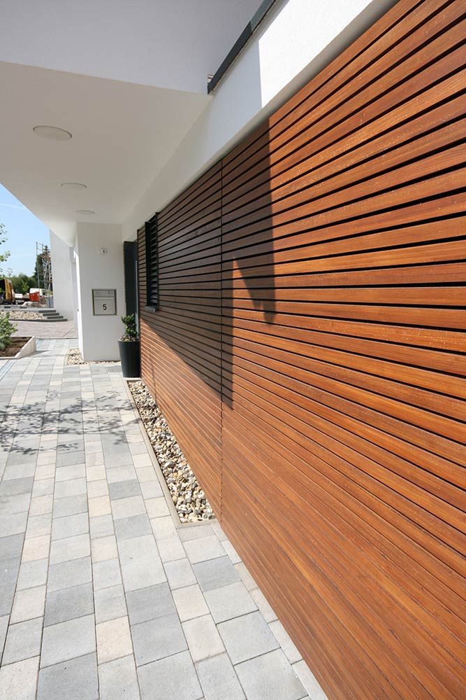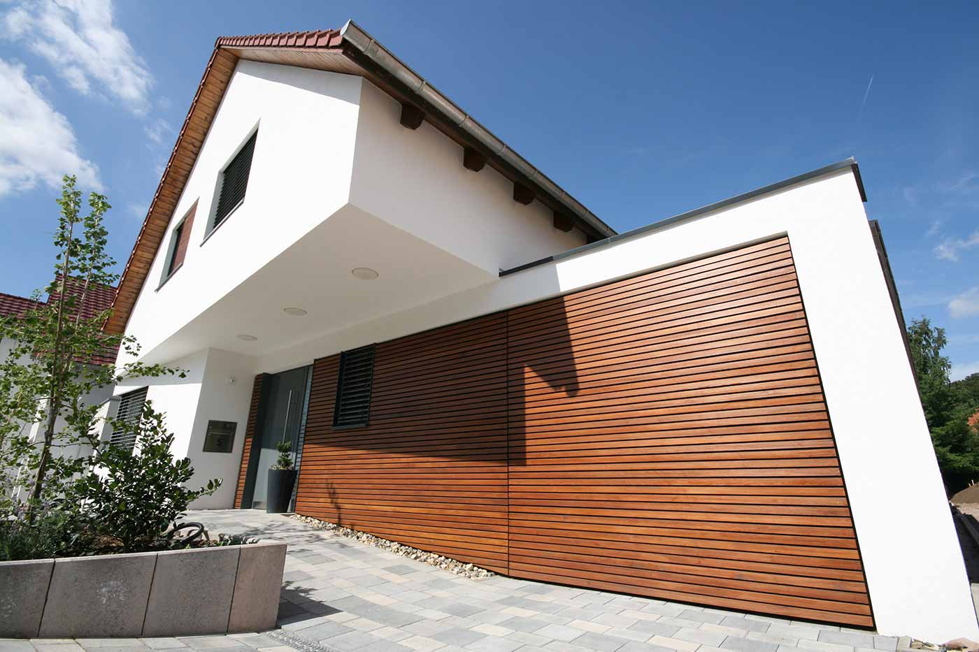 - Holzfassadenelemente mit flächenbündigem Garagentor