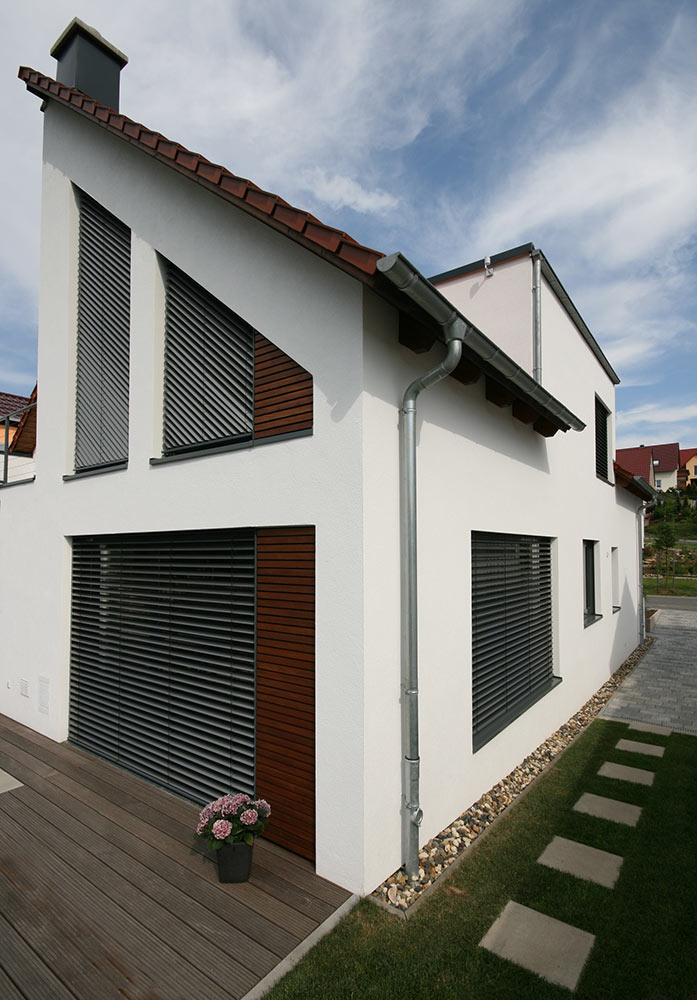 - Schrägraffstore in Spitzfenstern zur West Seite